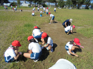 閉会式です。最後まで立派な態度で式にのぞみました。式終了後は,保護者の皆様のお手伝いをいただき,片付けも素早く終了することができました。おかげさまで今年の運動会も大成功に終わることができました。子どもたち一人一人の胸の中によい思い出として本日の運動会が刻み込まれればと願っています。