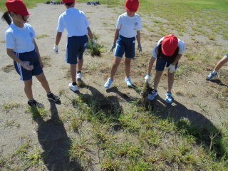 1年生が植えたアサガオの種も芽を出してすくすくと育っています。8日(木),1年生水やりをしてお世話をしていました。
