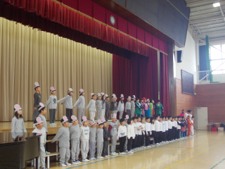 6年生から1~5年生に向けて、お礼ための歌のプレゼントがありました。