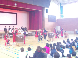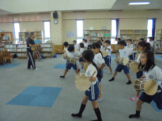 休み時間には,体験コーナーもあり,太鼓や三味線などを楽しんでいました。