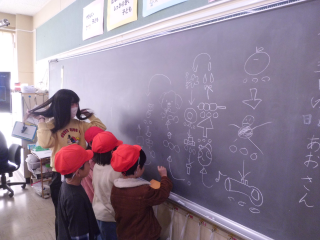 3時間目は5年生が民話を聞きました。5年生は,総合的な学習の時間で多賀城の学習をしています。「多賀城に伝わる昔話を聞こう」ということで,今回話を聞くことになりました。直接多賀城に関係のない話もあったのですが,「七ツ森の伝説(蛇石物語)」「納豆の話」「多賀城村の話」「千引石」「こさじ物語」「人間の寿命」の6つの話を聞かせていただきました。