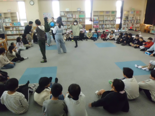 11月16日(木)の9時~10時の1時間。4・5・6年生が,落語ワークショップ【めばえ寄席(よせ)】を鑑賞しました。