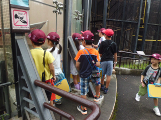 あいにくの雨で肌寒かったのですが,5年生は元気に出発しました。